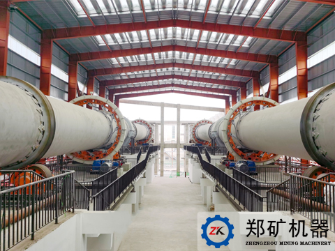 該生產線主要有原料處理系統、烘干系統、粉磨系統、攪拌陳化系統、制粒系統、焙燒系統、成品包裝系統以及尾氣處理系統等組成。